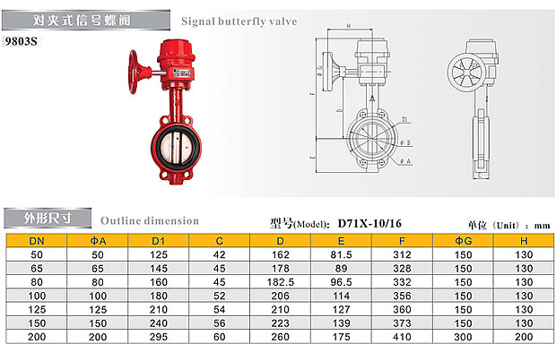 9803S (D71X-10/16) 对夹式信号蝶阀