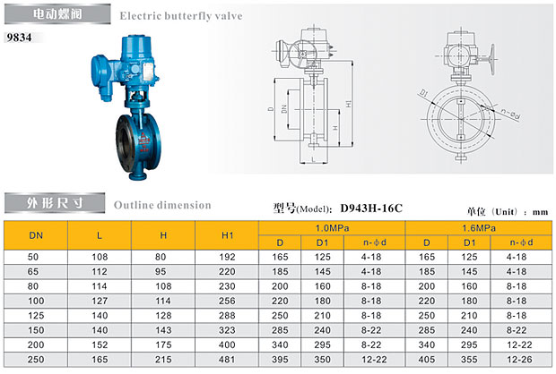 9834 (D943H-16C) 电动蝶阀